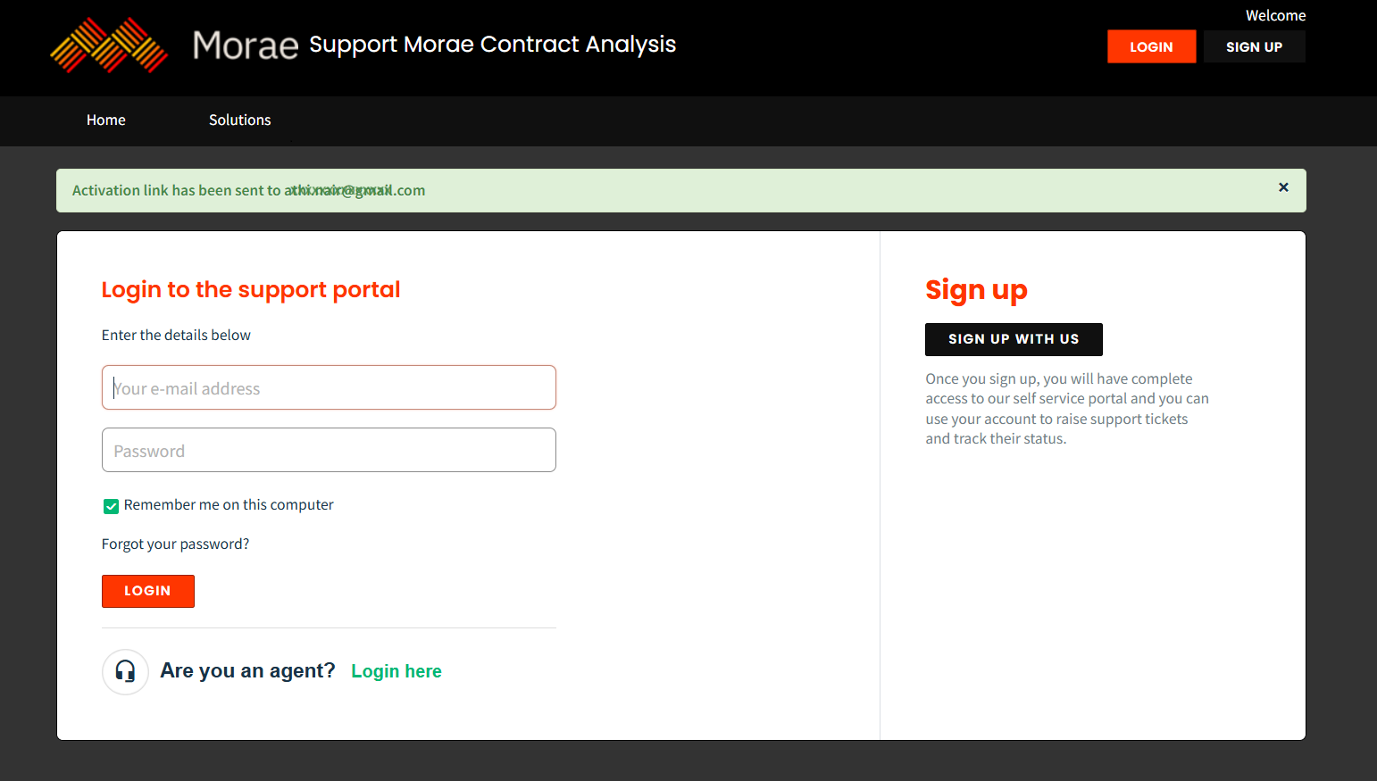 8. Once your account is activated, you can log in to the Support Morae Contract Analysis.